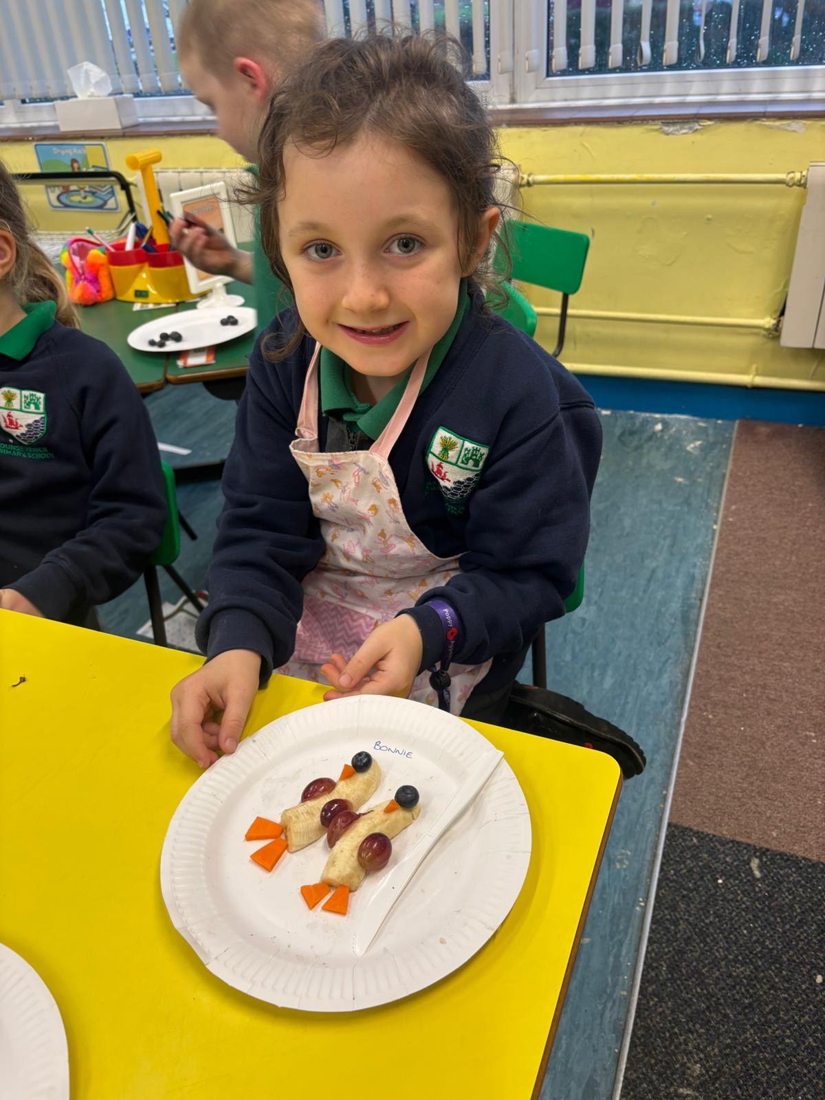 Bake off got made a great start to their cookery afterschool club today! We enjoyed peeling, chopping and slicing bananas, grapes, blueberries and carrots to make these yummy ‘Fruity Penguins’ 🐧